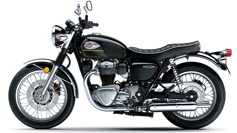 W800 คือรถจักรยานยนต์ที่ถูกออกแบบมาให้มีรูปลักษณ์สวยงามเหนือกาลเวลาและเหมาะกับผู้ใช้เป็นวงกว้าง หยิบยื่นสมรรถนะการควบคุมแบบขับขี่ใช้งานง่ายและการเก็บรายละเอียดที่เต็มเปี่ยมไปด้วยความประณีตพิถีพิถัน (โคดาวาริ :ทัศนคติในการผลิตผลงานชิ้นเอก) แต่จากโมเดลเรโทรที่ถูกเติมเต็มความทันสมัยเข้าไปทั้งสามรุ่น W800 คือรุ่นที่มาพร้อมรูปลักษณ์และสัมผัสที่คล้ายคลึงกับ W1 รุ่นแรกมากที่สุด จึงสามารถส่งมอบสัมผัสแห่งความอิ่มเอมและความภาคภูมิใจในการเป็นเจ้าของรถจักรยานยนต์ในยุค 60 ให้แก่ผู้ใช้ได้อย่างถ่องแท้ ด้วยล้อหน้าขอบ 19 นิ้ว ที่ช่วยให้การบังคับควบคุมเต็มเปี่ยมไปด้วยความมั่นคง เลี้ยวง่าย และไม่ไวจนเกินไปประกอบกับแซสซีซึ่งให้สัมผัสการขับขี่แบบคลาสสิกใกล้เคียงกับรถจักรยานยนต์ในตระกูล W รุ่นแรกๆ รวมไปถึงแฮนด์เดิ้ลบาร์และเบาะที่ถูกออกแบบมาโดยเฉพาะที่เสริมให้ตำแหน่งท่านั่งมีความผ่อนคลายในทุกท่วงท่าการขับขี่ การมาถึงของ W800 ช่วยให้ผู้ขับขี่ที่ต้องการดื่มด่ำไปกับกลิ่นอายของประวัติศาสตร์ สามารถเพลิดเพลินไปกับรถในตระกูล W ที่มีให้เลือกมากถึงสามรสชาติ