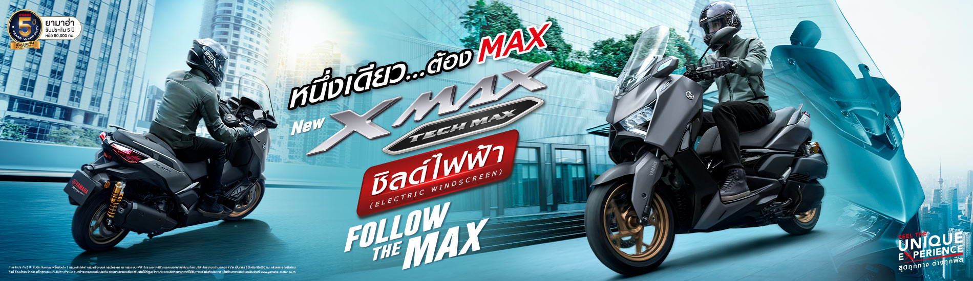 YAMAHA XMAX [2026] ที่สุดคือ MAX อัตลักษณ์แห่งความภาคภูมิใจ ยกระดับการขับขี่ด้วยสมรรถนะเหนือชั้น สัมผัสเอกลักษณ์พิเศษเฉพาะตัวที่ไม่เหมือนใคร ให้คุณเป็นหนึ่งเดียวของความ MAX และคุ้มค่าด้วยการรับประกันนานถึง 5 ปี หรือ 50,000 กิโลเมตร*